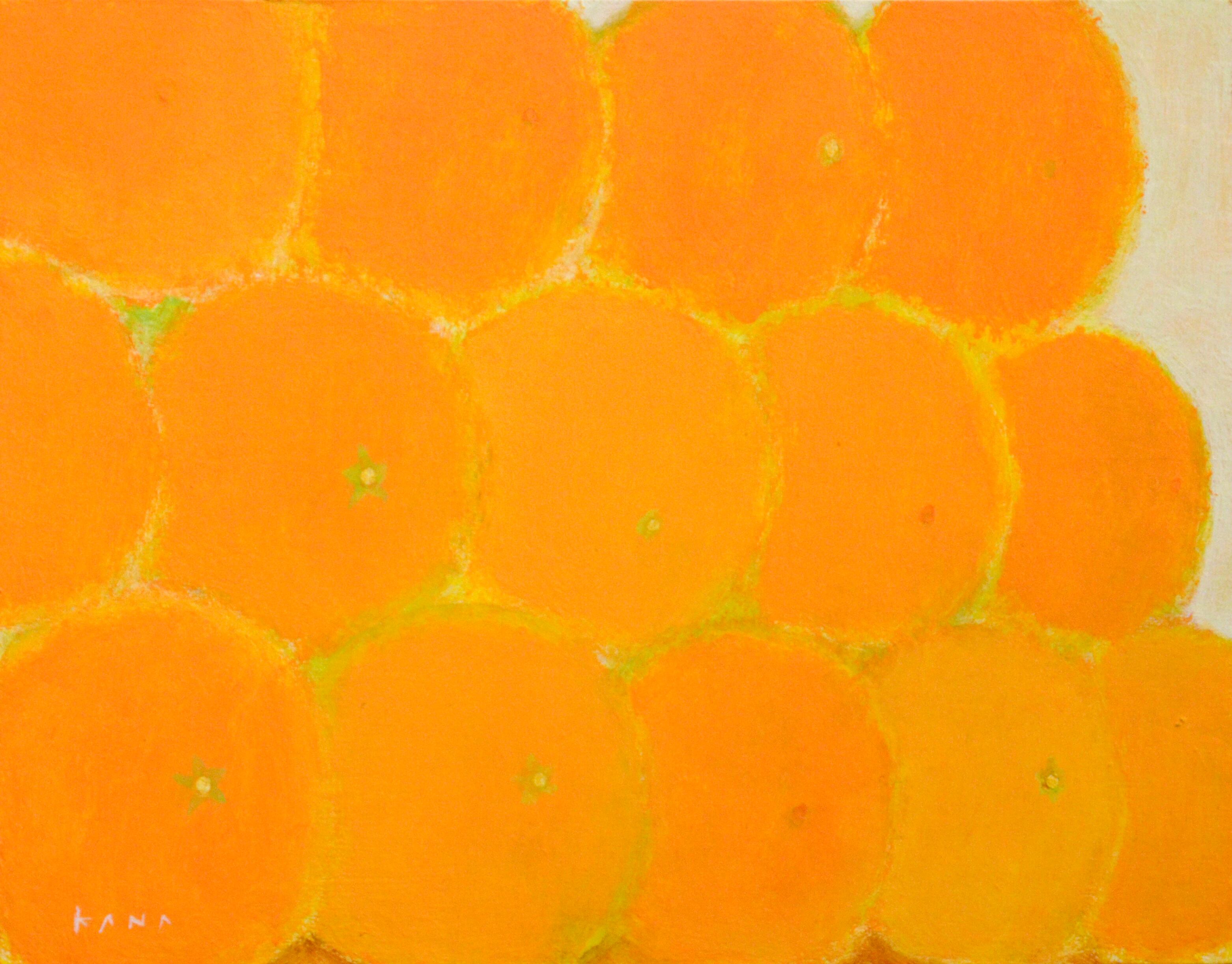 伊藤香奈『どこの国だったか忘れましたが、オレンジがびっしりきれいに並んでいました。』 2013年 F0 180×140mm パネルにアクリル絵具