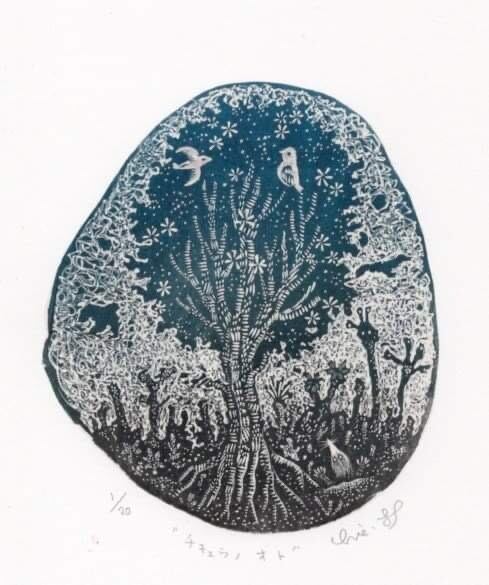 12×10cm 木口木版 額付き